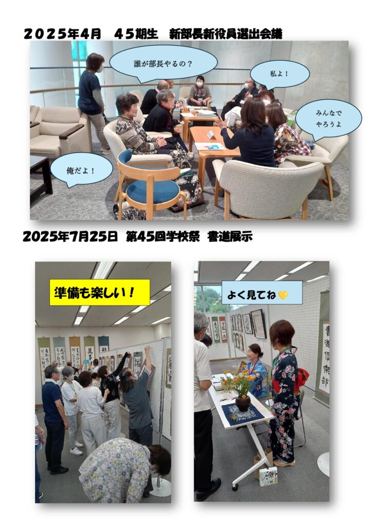 書道クラブ 部長選出 第45回学校祭 活動報告